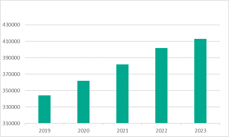 Cifra promedio diaria de archivos maliciosos detectados por las soluciones de seguridad de Kaspersky entre 2019 y 2023 (del 1 de enero al 31 de octubre)