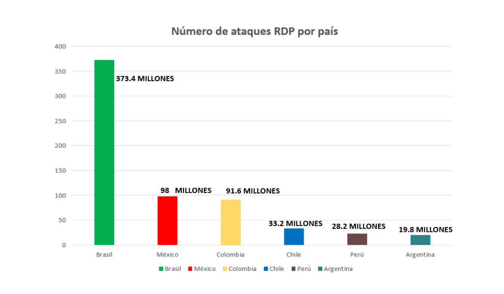 Los países de América Latina en donde se registró el mayor número de ataques en 2020 fueron: Brasil con 373 millones, México con 98 millones y Colombia en tercer sitio con la cifra mencionada.