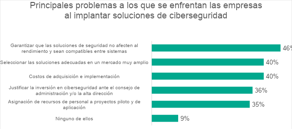 Los motivos pueden deberse a la gran diversidad de dispositivos y sistemas IoT, que no siempre son compatibles con las soluciones de seguridad. Casi la mitad (46%) de las empresas encuestadas a nivel global temen que los productos de ciberseguridad puedan afectar al rendimiento del IoT, o que pueda ser demasiado difícil encontrar una solución adecuada (40%). Otros problemas comunes a los que se enfrentan las compañías a la hora de implantar herramientas de ciberseguridad son los elevados costos (40%), la imposibilidad de justificar la inversión ante la junta directiva (36%) y la falta de personal o de conocimientos específicos en materia de seguridad IoT (35%).