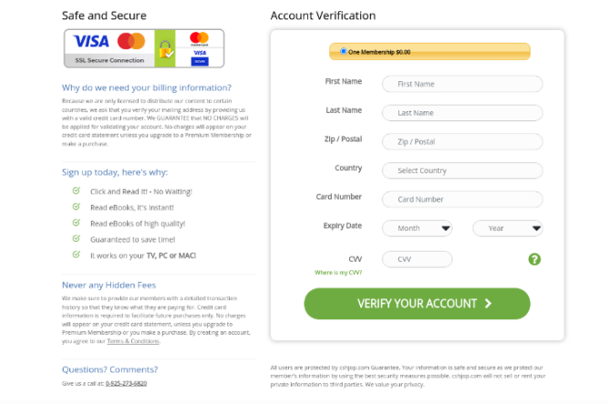 Ejemplo de una página de phishing que se hace pasar por un lector de libros