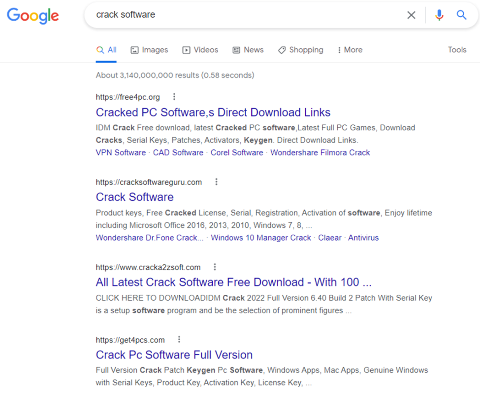 Curiosamente, los ciberdelincuentes utilizaban específicamente herramientas profesionales de SEO para mantenerse en los primeros resultados de los motores de búsqueda, de modo que pudieran ser encontrados fácilmente al buscar “cracks” y “keygens” en Internet y dirigirse a la mayor cantidad de usuarios posible.
