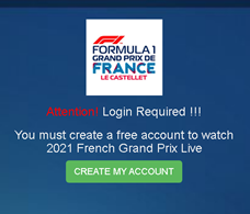 Un ejemplo de página de phishing que ofrece la transmisión de carreras de la F1