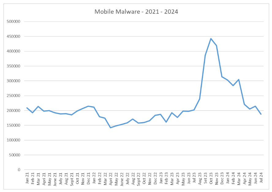 El Panorama Anual de Amenazas de Kaspersky para América Latina 2024 muestra que, los intentos de ataques contra dispositivos móviles en la región sumaron 3.9 millones en los últimos 12 meses (durante el periodo de agosto de 2023 a julio de 2024), lo que representó 7.46 bloqueos por minuto. Esta cifra significó un aumento del 70% respecto a los 2.3 millones registrados en el mismo periodo entre 2022 y 2023. Históricamente, se trata también de un número récord de ataques y demuestra que las amenazas para dispositivos móviles han aumentado.
