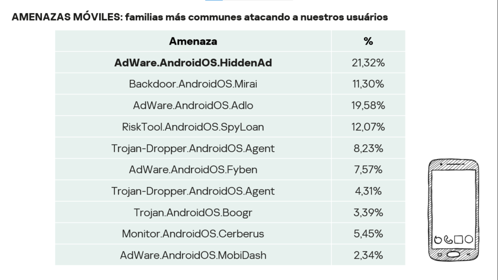 Las principales amenazas detectadas en celulares y tabletas son las apps que muestran publicidad no deseada. Sin embargo, también destacan las plataformas que ofrecen préstamos con el móvil como garantía, pero bloquean el acceso al dispositivo de la víctima si no paga las cuotas mensuales.